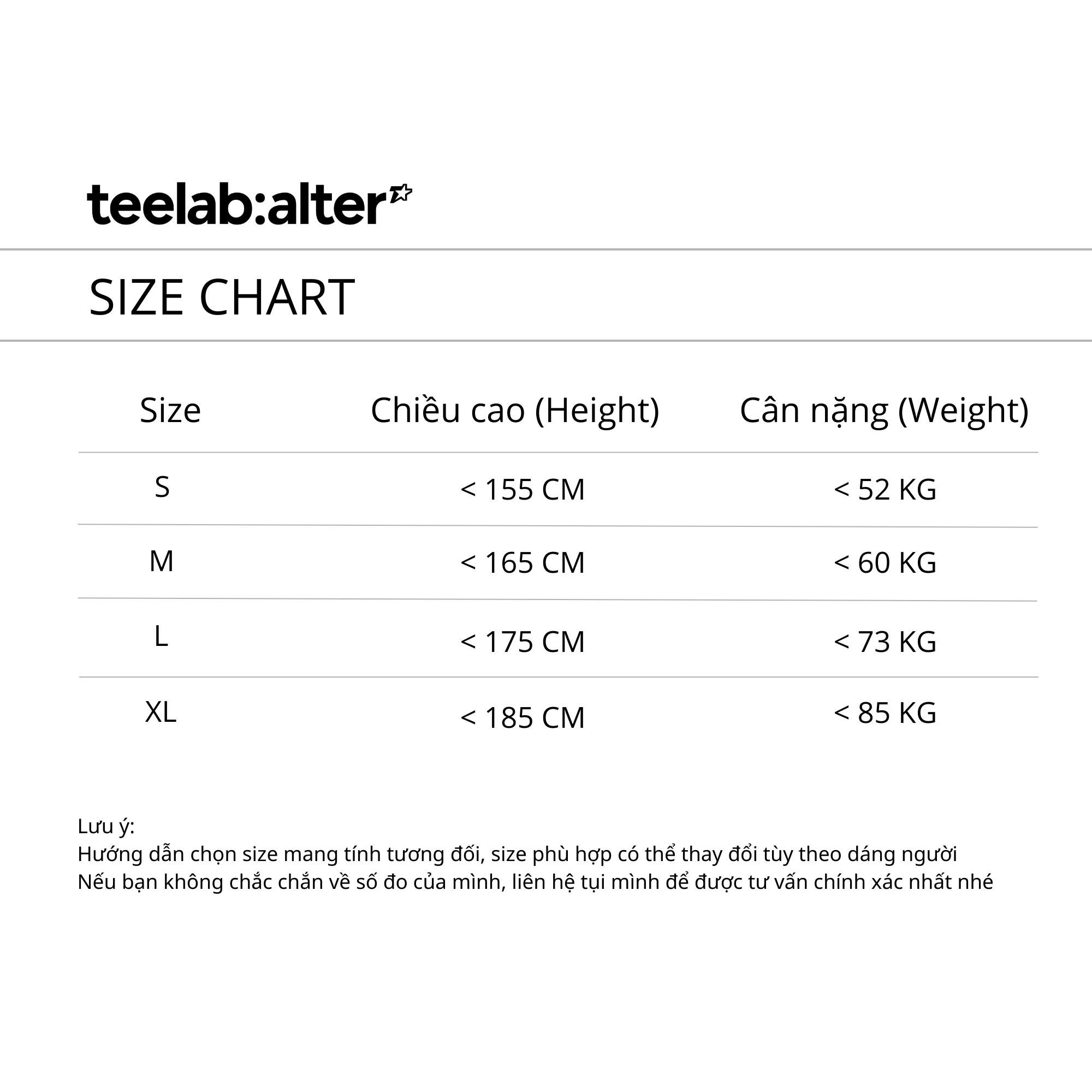 • Bảng size chung 4